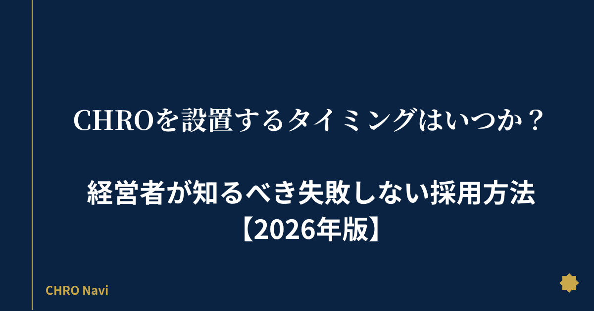 人的資本経営の時代において、CHROの設置は一部の大企業だけの話ではなくなっています。しかし「いつ・どんな人を・どう採用するか」を間違えると、CHROが機能せず組織が混乱するリスクがあります。
